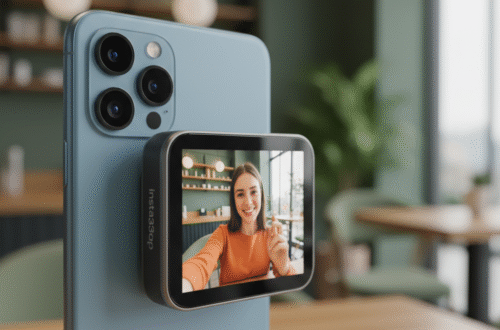 Insta360 Snap là một phụ kiện màn hình nhỏ gọn với thiết kế hút từ, dành riêng cho những ai muốn sử dụng camera sau chất lượng cao của điện thoại để chụp selfie. Nó có thể hút vào mặt sau của điện thoại Android hoặc iOS, hoạt động như một “gương kỹ thuật số”, giúp bạn dễ dàng xem khung hình selfie mà không cần lật điện thoại.